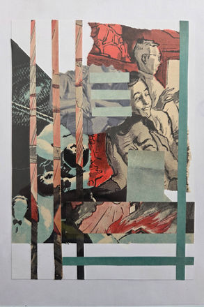 Wally's artist statement: Collage art to me is a way of telling a surreal story with found imagery. It’s a way of immediately recycling something old and making it new again. The combination of colors, shapes, and text lets the viewer form their own narrative for the piece. The first set of collages I have chosen for this exhibition were created from a stack of Boys' Life magazines from the late 1950s and early 1960s. A welcomed challenge was to create interesting pieces using the limited color palette throughout the magazines of this time period and relying on the unique advertising images. The other set of collages I am showing are a series of postcard collages I have created using a ground image of a certain place or setting and turning it into something new and interesting by just adding a simple abstract shape or other imagery.